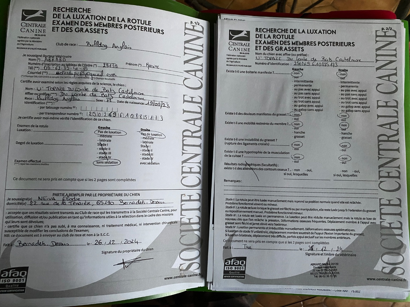 26/12/2024 - Trie sur Baïse ( 65220 ) Examen médical des rotules