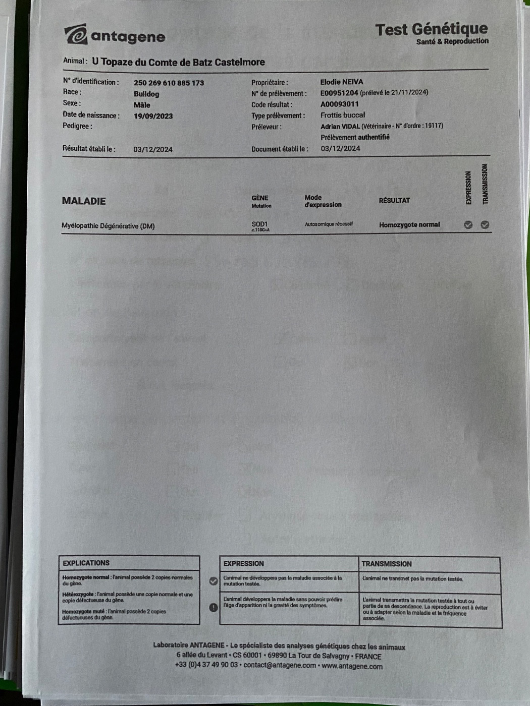 Topaze n est pas atteint de cette maladie et n est pas porteur du gène