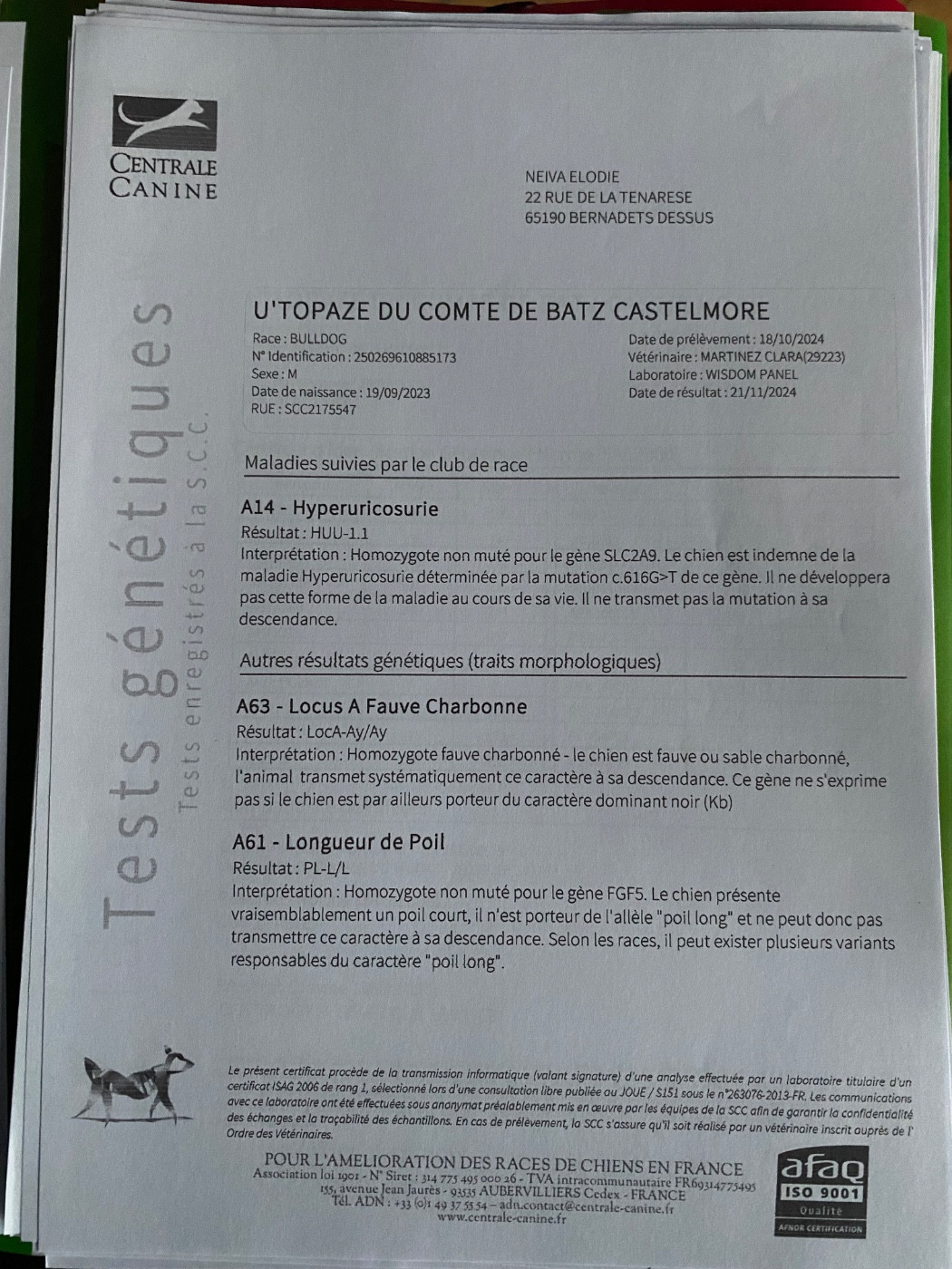 21/11/2024 - Trie sur Baïse ( 65220 ) Test génétique SCC